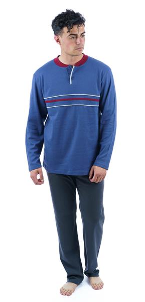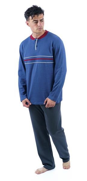 Ανδρική Πυτζάμα βαμβακερή με πατιλέτα δυο κουμπιών στον λαιμό – Ιδανική για Χειμερινή Χαλάρωση