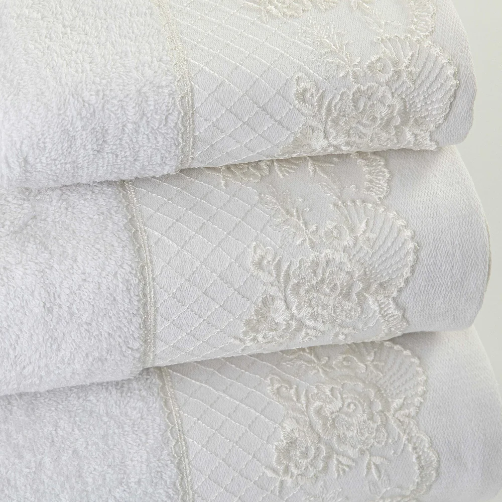 Σετ Πετσέτες 3 Τεμαχίων 100% Βαμβακερές Πενιέ Φροτέ με Δαντέλα