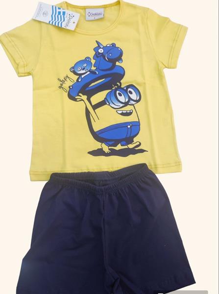 - Πυζάμα παιδική για αγόρι 1 έως 7 ετών “MINIONS” με μπλούζα κοντομάνικη σε κίτρινο χρώμα .