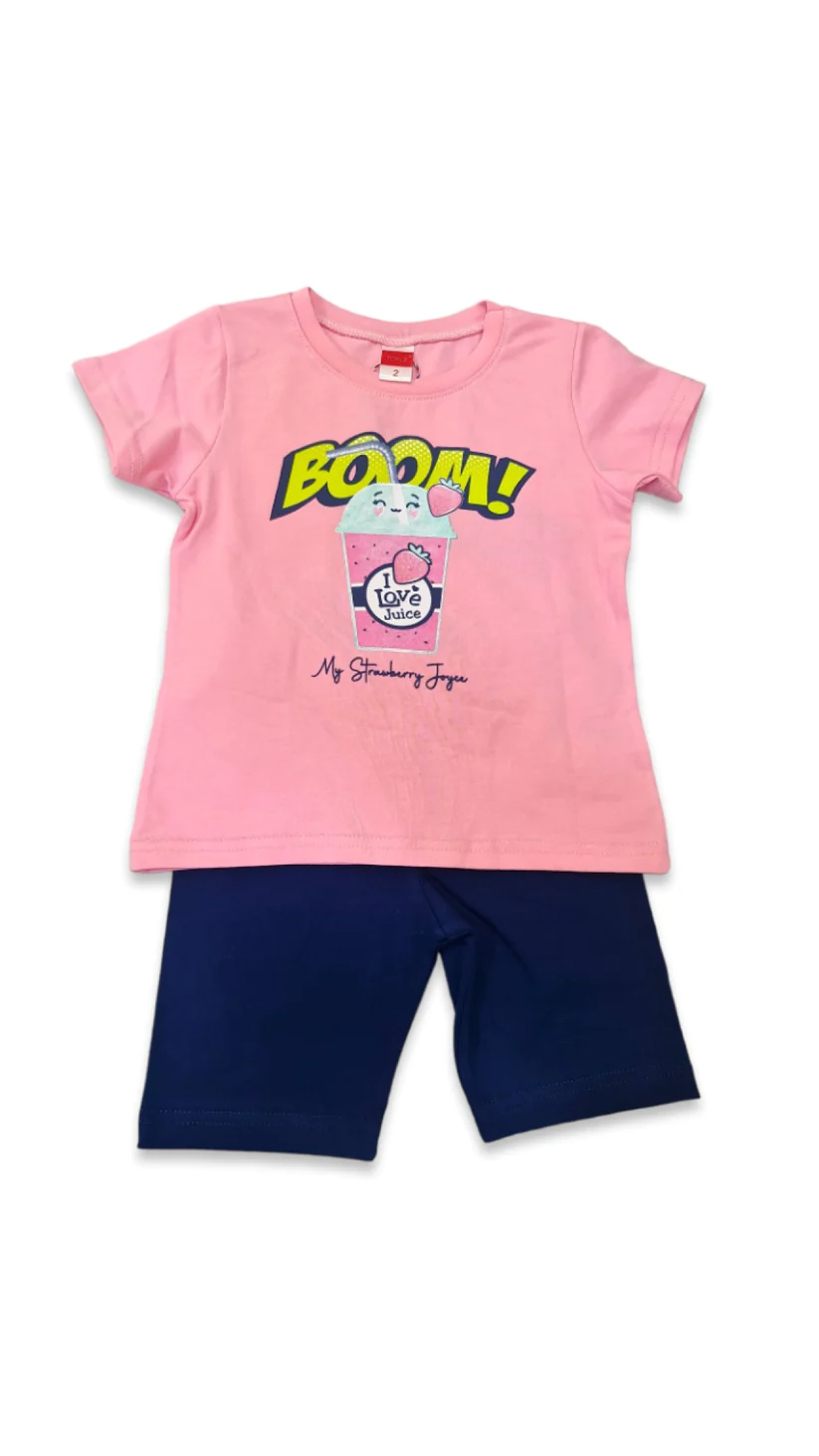 Χρώμα : ροζ μπλούζα με μπλέ κολάν ποδηλάτου.